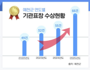 예천군은 2025년 한 해 동안 중앙·광역·민간 평가 전반에서 우수한 성과를 거두며 총 66건의 기관 표창을 수상했다고 밝혔다. 이는 2022년 49건, 2023년 52건, 2024년 55건에 이어 4..