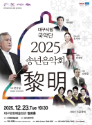 대구시립국악단(예술감독 겸 상임지휘자 한상일) 2025 송년 음악회 `여명(黎明)` 공연이 12월 23일 오후 7시 30분 대구문화예술회관 팔공홀에서 펼쳐진다. 곽태천, 유지숙, 최경만 등 명인 명창의..