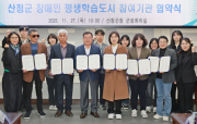 산청군은 27일 군청 군정회의실에서 산엔청복지관 등 장애인 단체와 ‘장애인 평생학습도시 운영을 위한 업무협약’을 체결했다고 밝혔다. 이번 협약은 지역 중심의 장애인 평생교육 기반을 강화......
