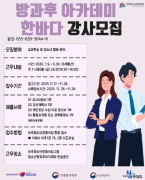 거제시는 아주청소년문화의집에서 운영하는 청소년방과후아카데미“한바다”에서 활동할 강사를 모집한다고 밝혔다. 청소년방과후아카데미는 방과 후 돌봄이 필요한 청소년을 대상으로 청소년에......