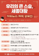 경상국립대학교 국어문화원은 제629돌 세종 나신 날(5월 15일)을 기념하여 ‘우리의 큰 스승, 세종대왕 카드뉴스 제작 공모전’을 개최한다. 이번 공모전은 ‘세종대왕의 업적’과 ‘한글의 우수성’.....