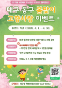 대구 동구청은 고향사랑기부제 활성화를 위해 4월 한 달간 ‘봄맞이 고향사랑 이벤트’를 진행한다. 고향사랑e음 사이트를 통해 대구 동구에 10만원 이상 기부하면 자동으로 응모가 되며, 참여자 전?......