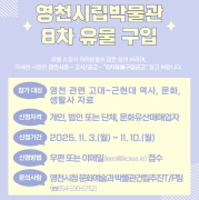 영천시는 지역의 역사와 문화를 보존하고 시립박물관 소장품을 확충하기 위해 ‘제8차 유물 공개 구입’을 추진한다고 밝혔다. 이번 유물 공개 구입은 영천시립박물관의 유물 확충과 향토문화 연구 ......